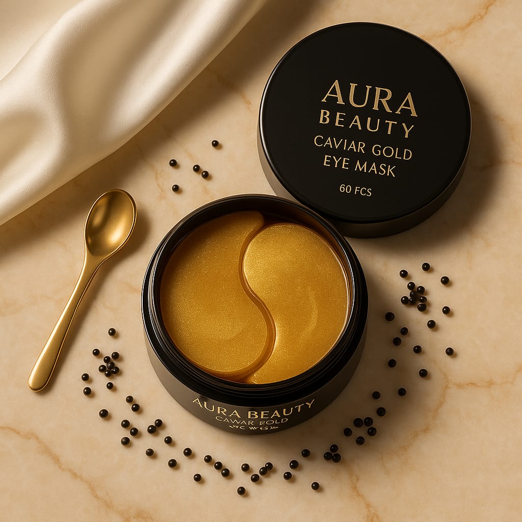 Indulge your eyes in the luxury of gold and caviar. The Caviar Gold Eye Mask – Aura Beauty is a premium under-eye treatment designed to rejuvenate, firm, and brighten tired eyes. Each hydrogel patch is infused with Korean caviar extract and 24K gold essence, delivering deep hydration and reducing the appearance of dark circles, puffiness, and fine lines.